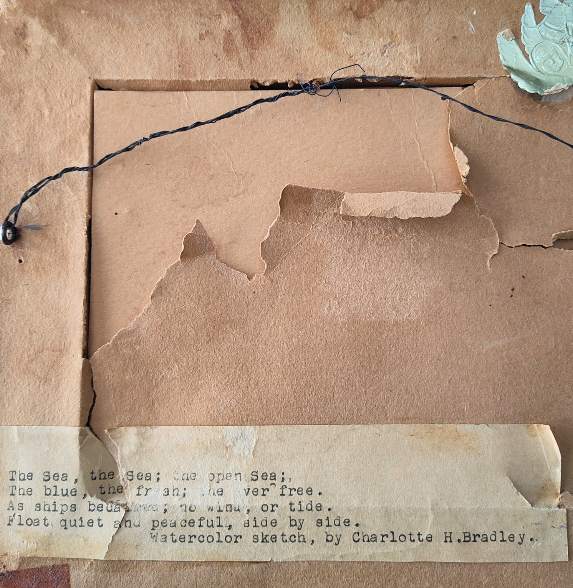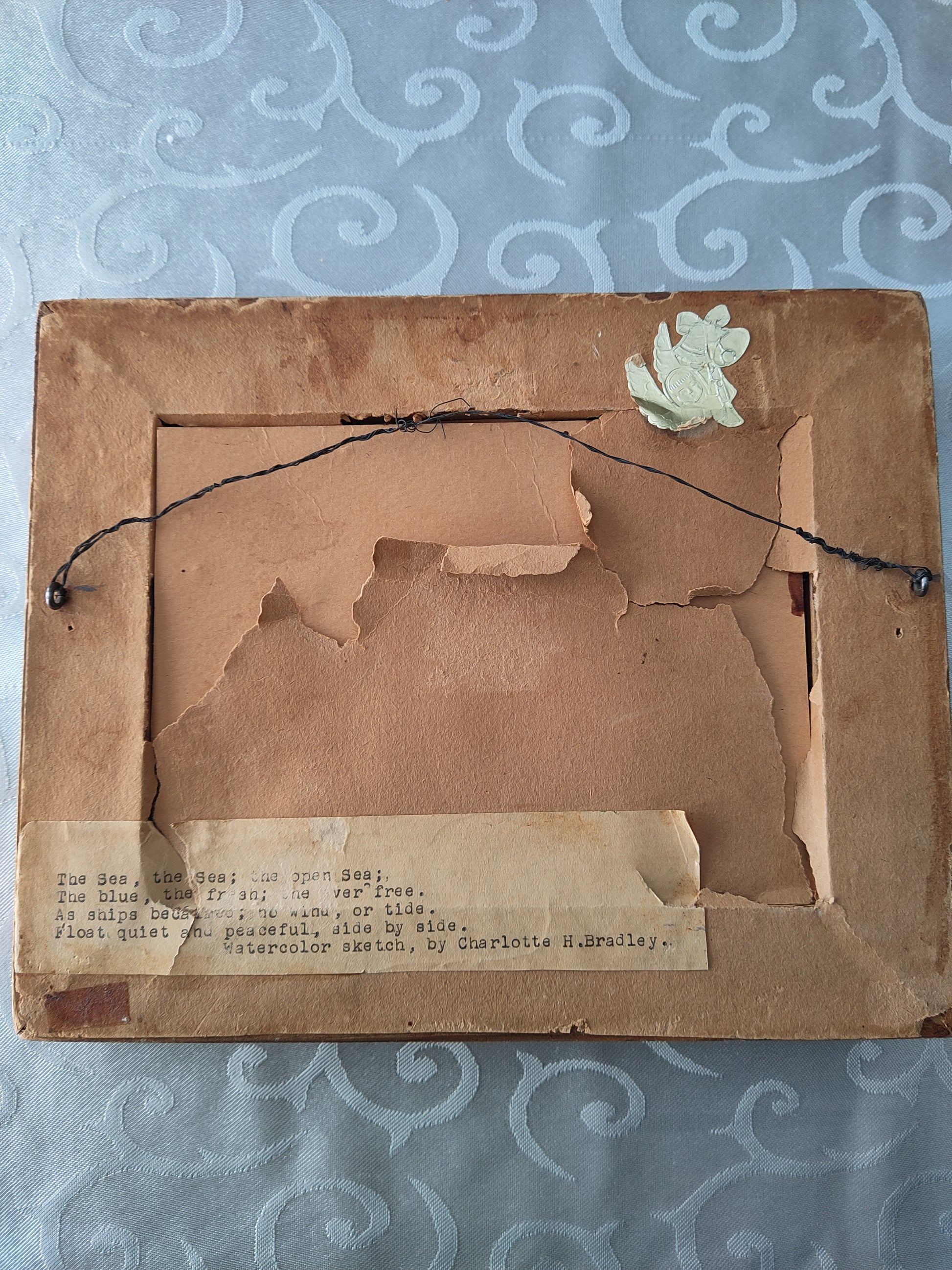 One of two small vintage (nearly antique!) watercolour paintings by Charlotte H. Bradley. No date on this one however its companion is dated '44. Foil sticker on back typical of mid 20th century gift shops.