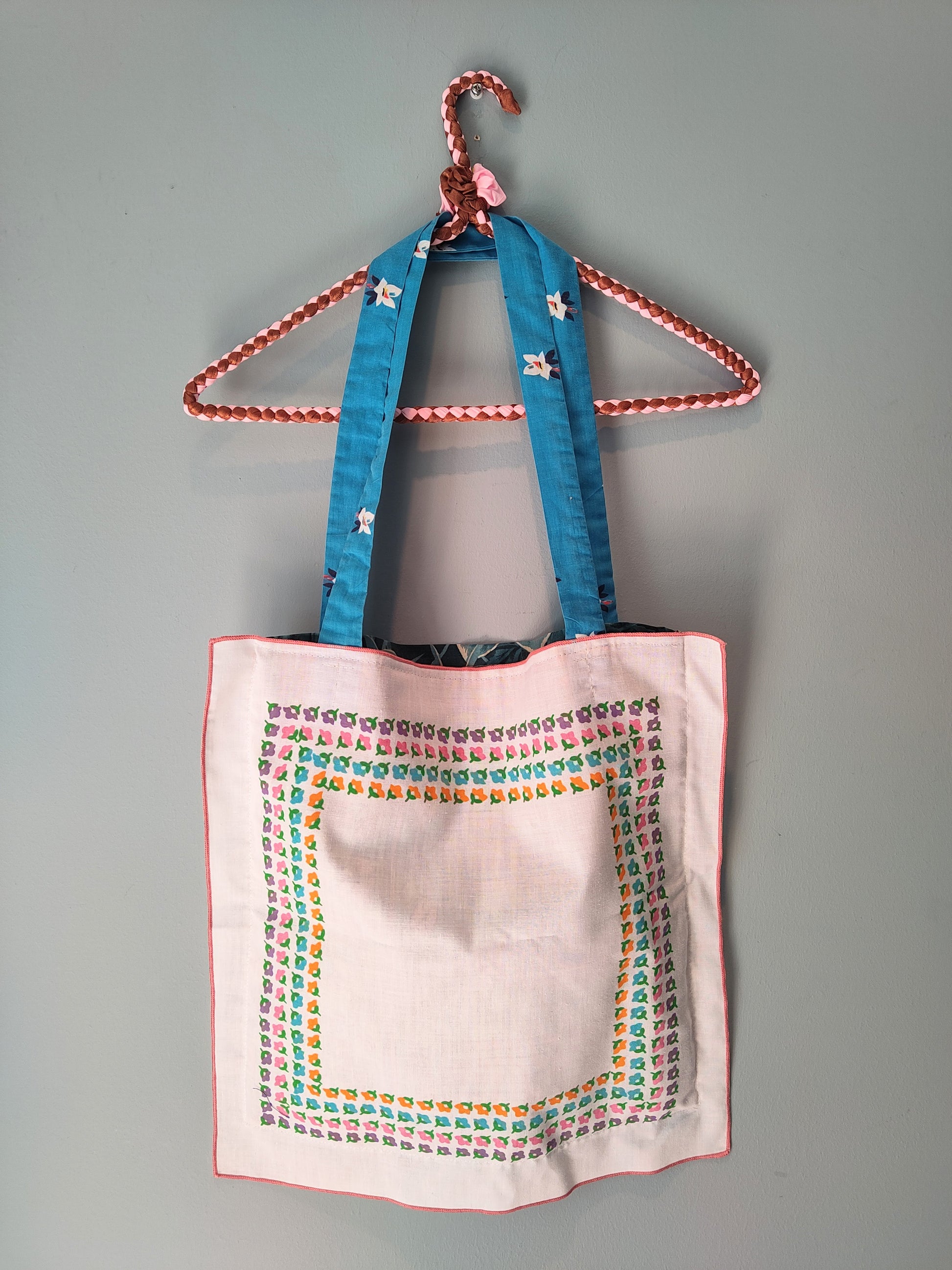 These tote bags are each 'perfectly imperfect', one of a kind specimens. This design is about letting the pattern and form of the napkins shine because they are just so pretty.