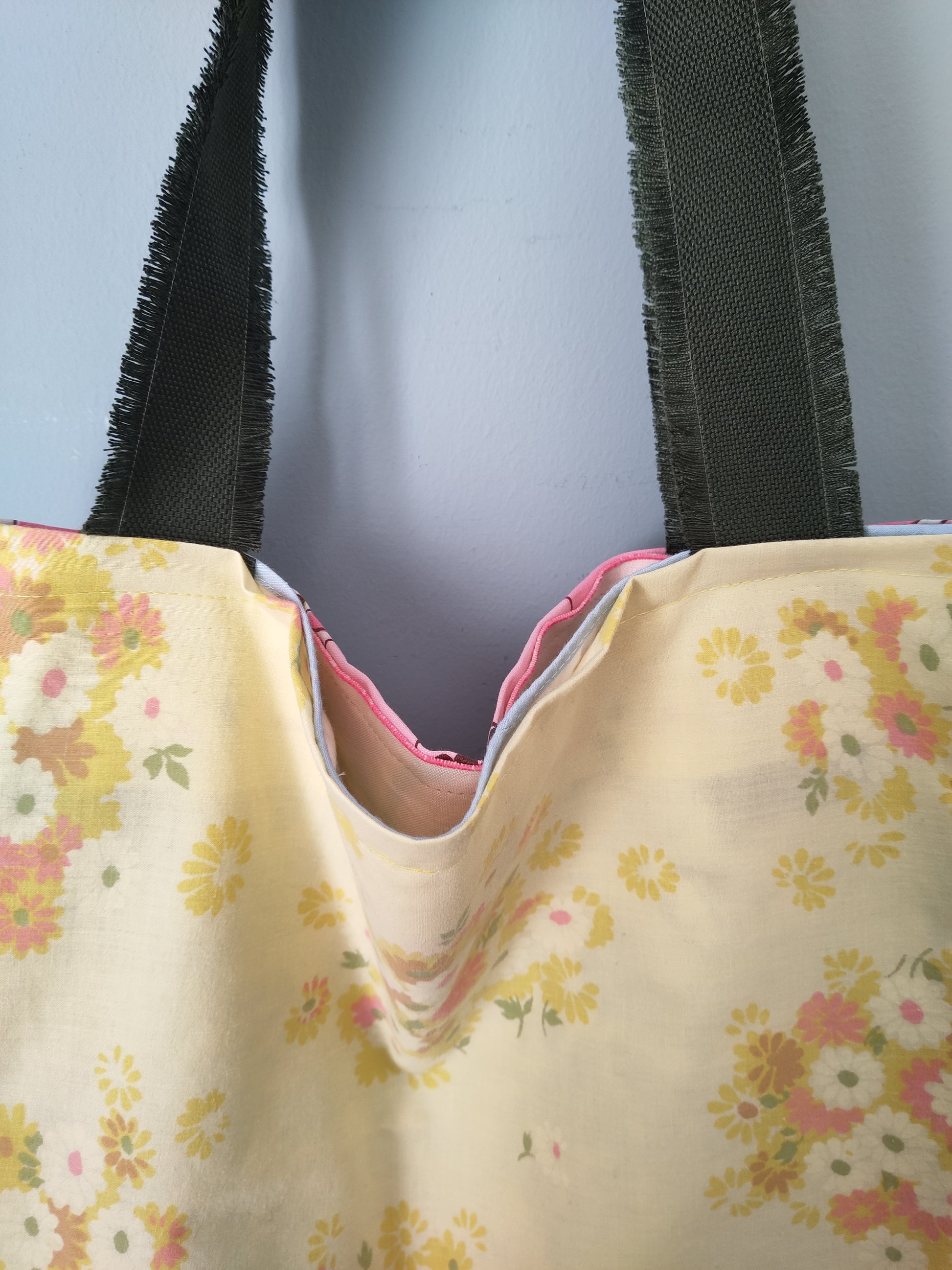 These tote bags are each 'perfectly imperfect', one of a kind specimens. This design is about letting the pattern and form of the napkins shine because they are just so pretty. All materials are washed before assembling.